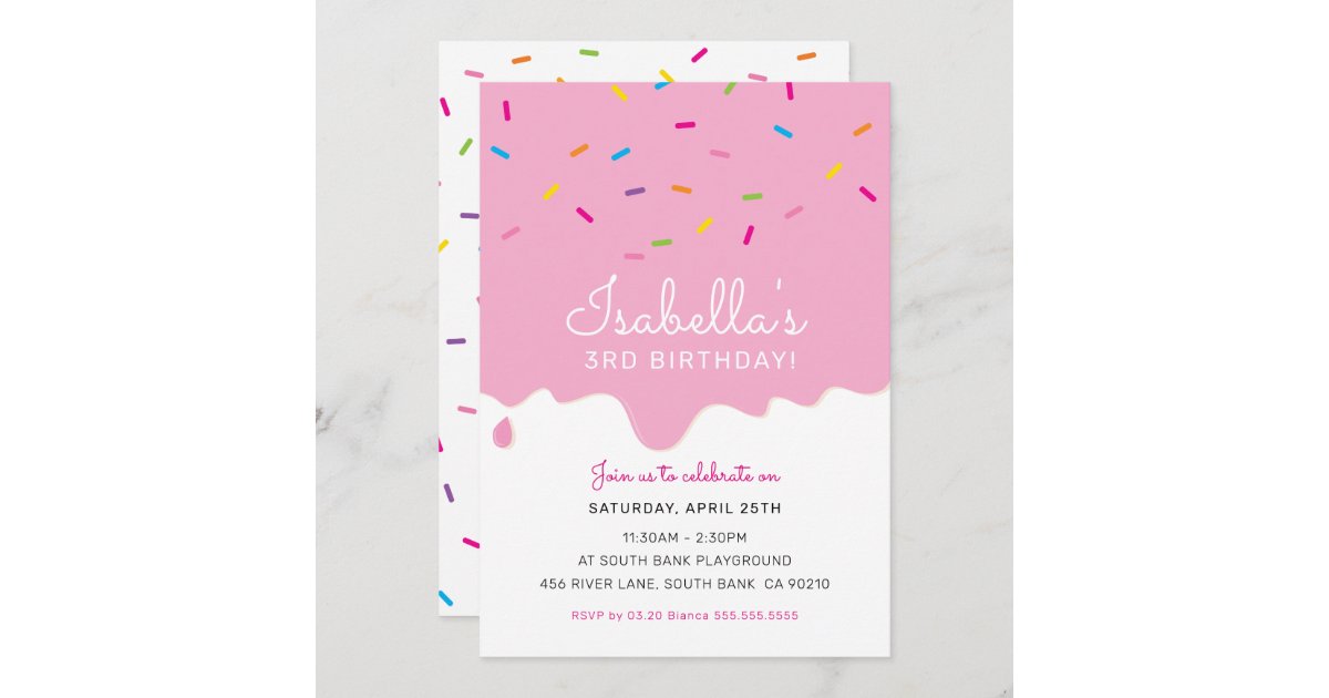 Kids Birthday Party Cake Frosting Drips Sprinkles Invitation Zazzle